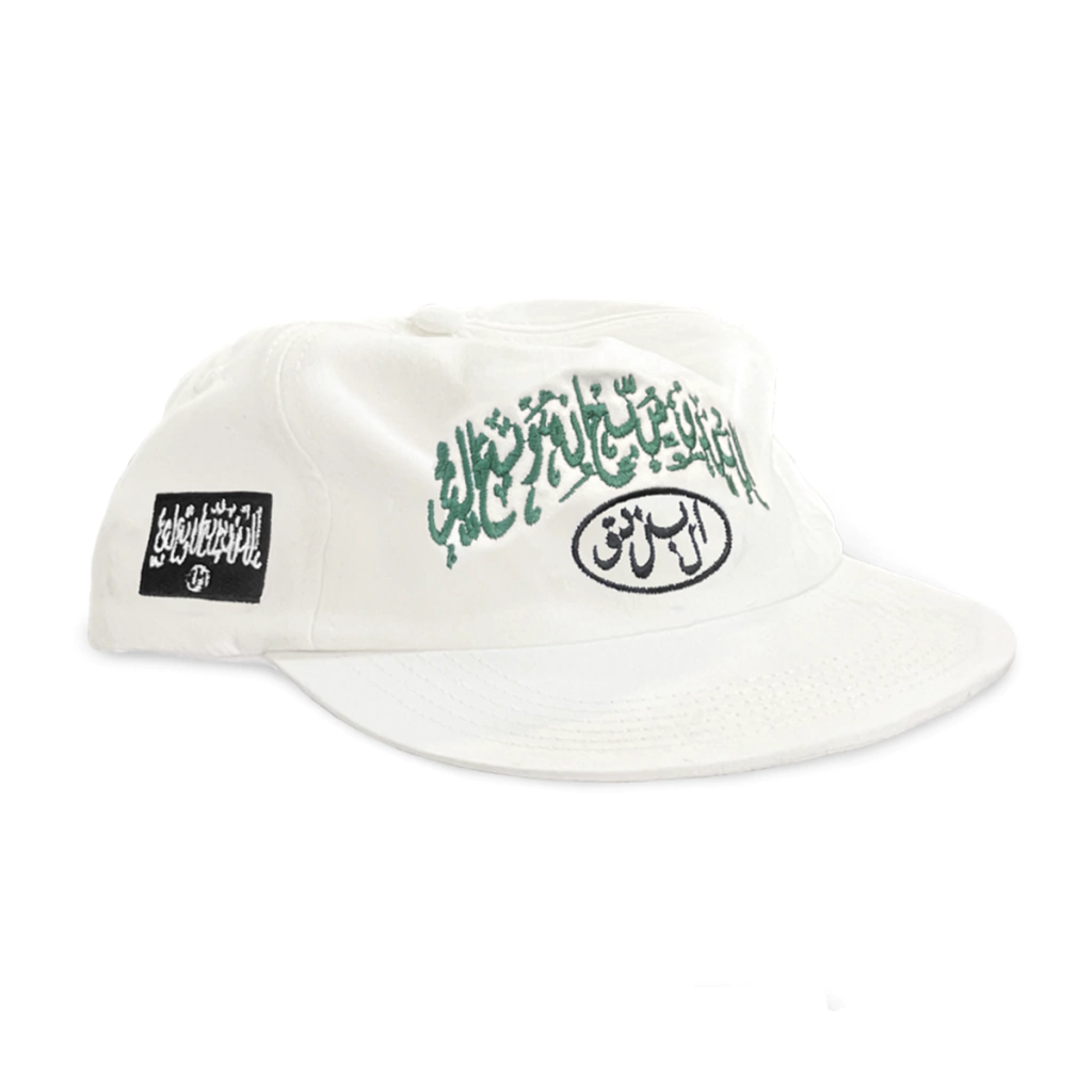 Boné bordado, desestruturado, aba rígida e de forma rasa.